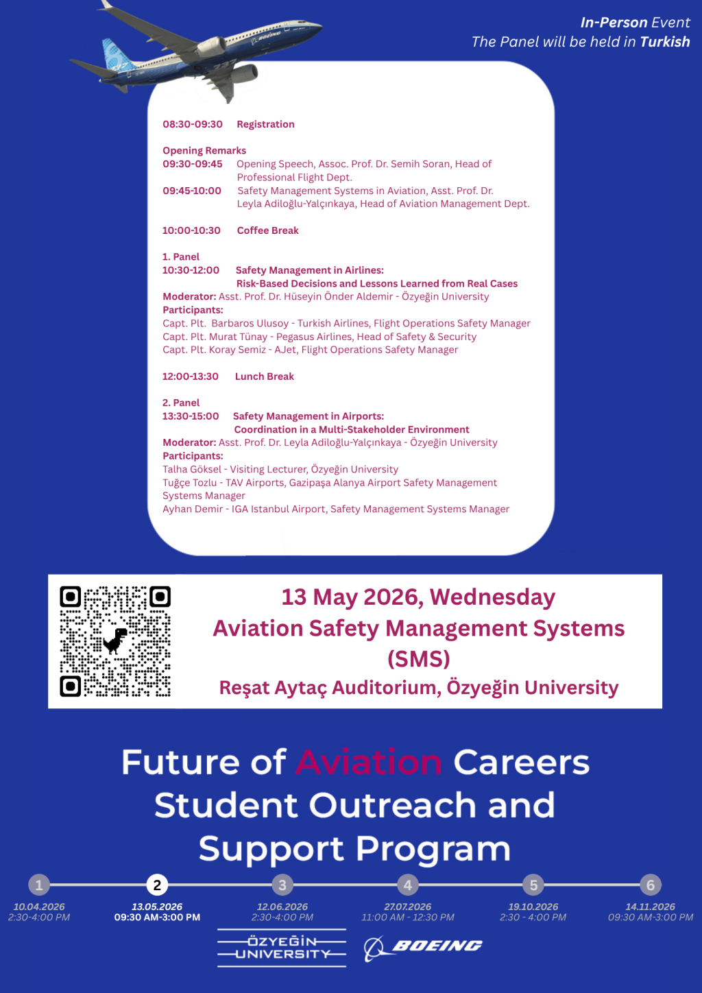 We are pleased to invite you to the “Aviation Safety Management Systems (SMS)” panels on May 13, 2026, at Özyeğin University. This event will bring together leading industry professionals to discuss real-life cases and best practices in aviation safety management.